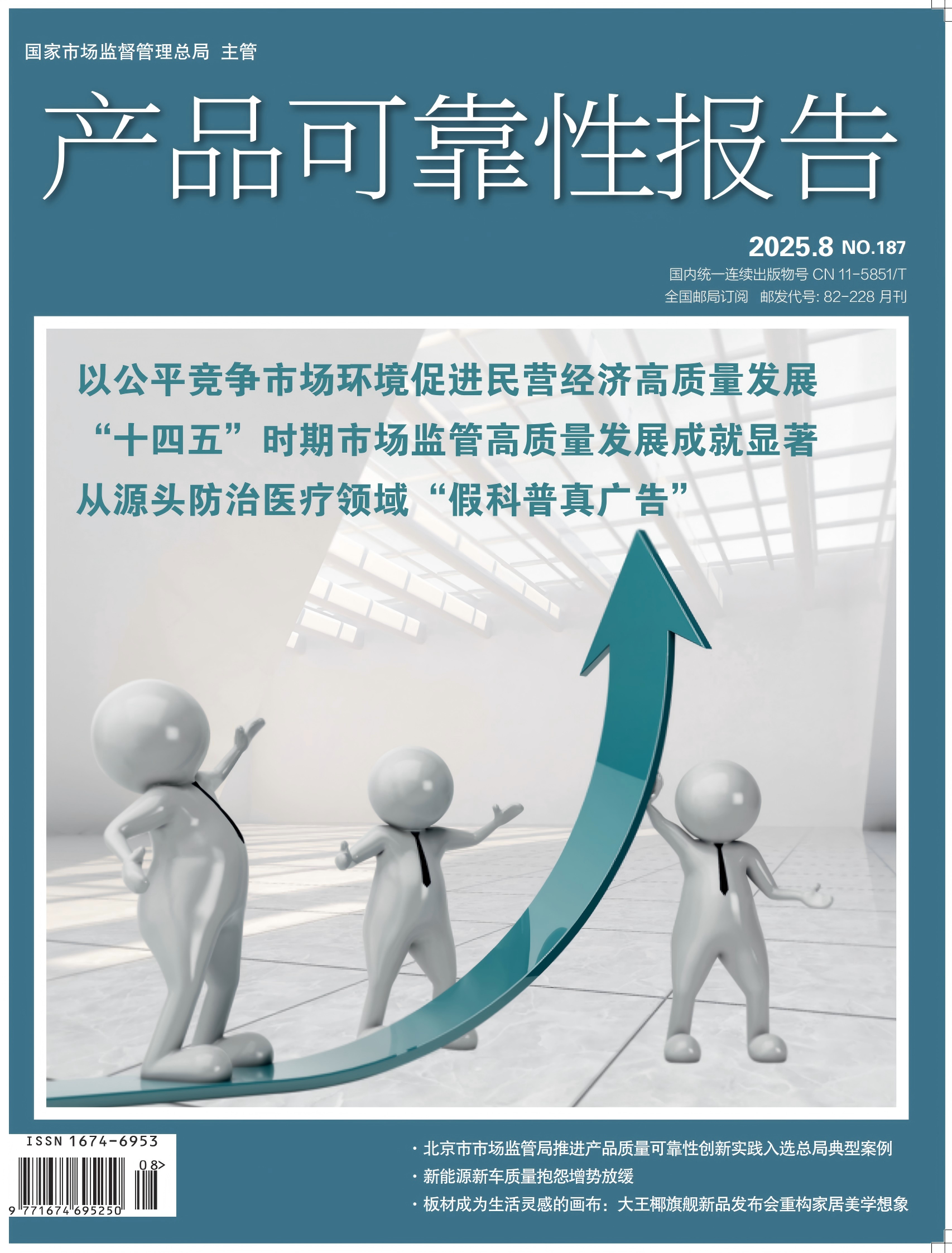 ![]() 本期热点: 以公平竞争市场环境促进民营经济高质量发展;高质量完成“十四五”规划系列主题新闻发布会介绍“十四五”时期市场监管高质量发展成就;从源头防治医疗领域“假科普真广告”;3年10次销售不合格消防器材 救命装备成“致命隐患”;“奇酒妙坛”私域直播叫卖“神酒”治“百病”,老人花3万元购药险丧命;新能源新车质量抱怨增势放缓。 《产品可靠性报告》由国家市场监督管理总局主管、中国质量报刊社主办,国内外公开发行,基于大数据,以质量管理、质量技术、质量安全为视点,以数据型、研究型报告为主的科技月刊。 《产品可靠性报告》在杂志的基础上,形成官方网站、微信公众号、抖音号等的融媒体阵营。 “产品可靠性”概念狭义上是产品在使用期间没有发生故障的性质,广义上是指使用者对产品的满意程度或对企业的信赖程度。 《产品可靠性报告》关注产品用户体验和品牌美誉度,关注产品耐用性和故障率、产品缺陷,把产品的安全性、稳定性和可靠性放在共同的层面下,用数据说话,以客观的眼光进行观察,宗旨是透视缺陷产品,揭秘质量差异。 《产品可靠性报告》重点关注汽车、电器、食品、化妆品、IT电子、房屋家居、数字科技、健康、直播电商等领域。 主要内容: 1、解读国家、总局及地方与质量、安全及可靠性相关的政策法规; 2、分析、测评、报告产品的质量、安全及可靠性; 3、开展满意度调查,发出用户的声音,关注消费体验; 4、推荐质量好、安全、可靠的产品并介绍其生产制造商的先进技术,交流管理经验; 5、关注有质量缺陷的产品以及这些产品的生产制造商,促进产品质量缺陷的解决、生产制造商质量管理及技术的提高; 6、可靠性标准的推进和讨论、可靠性技术的传播和发展、可靠性理论的灌输和争鸣。 《产品可靠性报告》风格权威、严肃但不失亲民。内容忌深奥晦涩,行文力求通俗易懂,用大众能读的懂、看的明白的表达方式阐述专业的问题。 欢迎订阅全新内容的 《产品可靠性报告》杂志 月订价:35元/册+12元快递费 年订价12期:420元+144元快递费=564元 联系方式: 订阅电话:010-84641072 联系电话:010-84640532 联系地址:北京市朝阳区育慧南路3号 邮编:100029 |