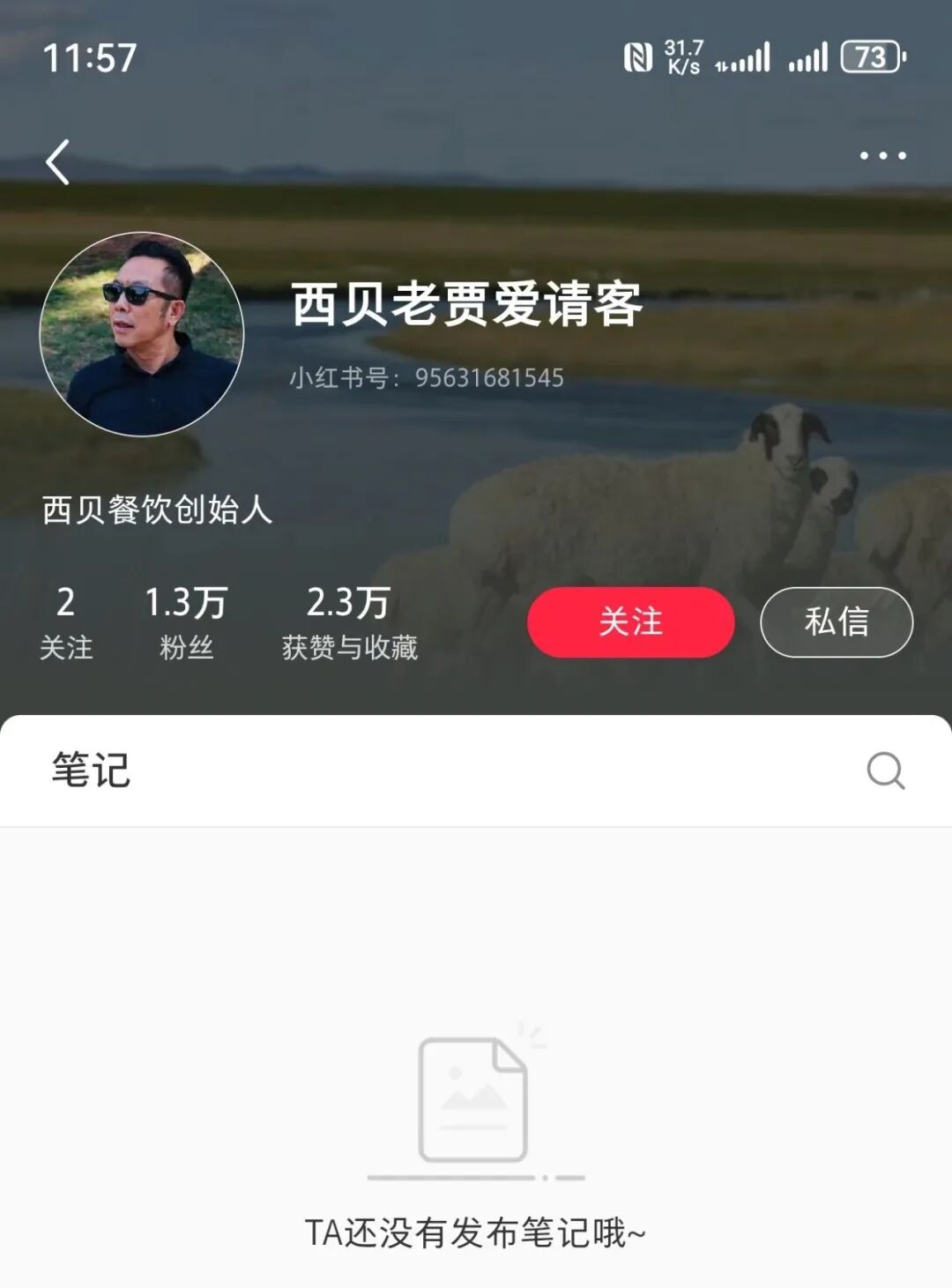 9月28日,记者发现,西贝餐饮创始人贾国龙的抖音账号目前仅保留一条公开视频作品,发布于2024年9月30日,该视频为“大熊专访贾国龙”,涉及西贝餐饮成长史,称西贝是西北菜领域佼佼者、年营收达62亿。 ![]() 与此同时,贾国龙小红书账号、微信视频号均被清空。 ![]() |