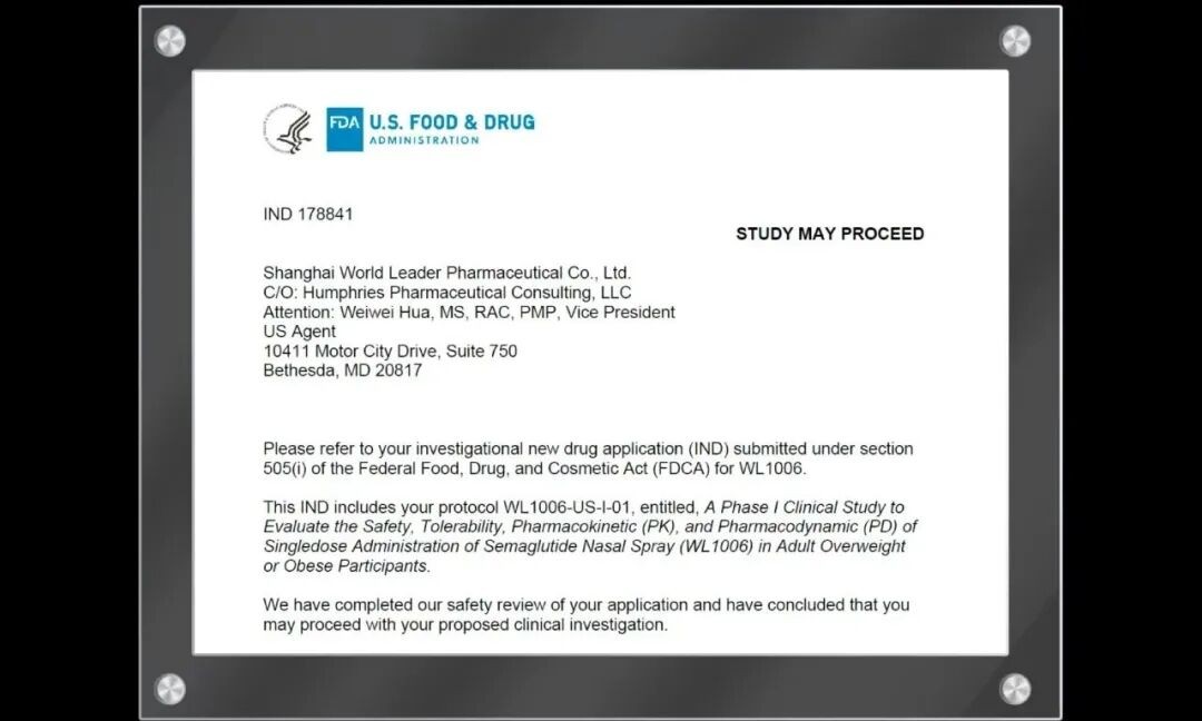 国产司美格鲁肽鼻喷雾剂获美国FDA批准进入临床