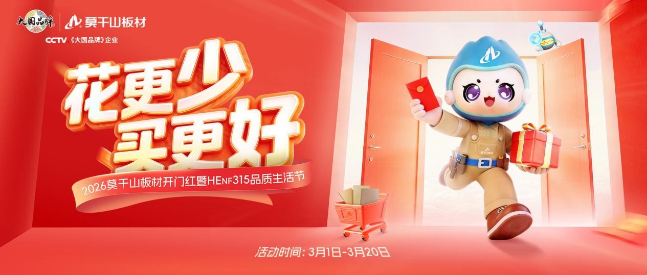 随着3·15国际消费者权益日对品质生活的倡导日益深入人心,莫干山板材携手《大国品牌》,开启2026莫干山板材开门红暨HENF315品质生活节,通过品牌赋能、品质筑基、服务护航,满足广大消费者对美好生活的向往,实现高品质生活就在莫干山。