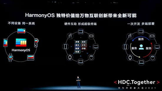 中国经济网东莞10月22日讯 华为开发者大会2021(Together)今日在东莞松山湖正式开幕。华为发布了最新的鸿蒙HarmonyOS 3开发者预览版、HMS Core 6等一系列领先的开发技术、工具和平台,帮助开发者更高效地打造创新的智能终端和应用服务。同时,华为还发布了消费者业务安全与隐私保护战略的“四大主张、三大承诺”,与全球开发者共建安全可信的数字世界。此间,华为常务董事、消费者业务CEO、华为智能汽车解决方案BU CEO余承东透露,鸿蒙HarmonyOS已在超过1.5亿智能手机、平板、手表、智慧屏等设备上应用,鸿蒙HarmonyOS智能座舱也将于今年年底或明年年初上市。