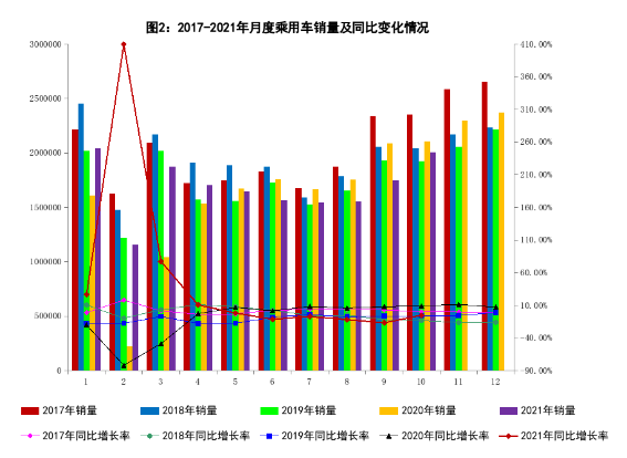 (一)10月乘用车销量同比下降5.0% 10月,乘用车产销分别完成198.8万辆和200.7万辆,同比分别下降4.7%和5.0%。分车型来看,轿车产销分别完成90.7万辆和92.4万辆,同比分别下降4.7%和2.6%;SUV产销分别完成93.1万辆和93.4万辆,同比分别下降4.3%和6.8%;MPV产销分别完成11.3万辆和11.4万辆,同比分别下降7.3%和7.2%;交叉型乘用车产销分别完成3.6万辆和3.5万辆,同比分别下降6.2%和9.3%。 1-10月,乘用车产销分别完成1664.8万辆和1687.1万辆,同比分别增长8.6%和8.8%。分车型看,轿车产销分别完成771.0万辆和780.0万辆,同比分别增长8.7%和8.6%;SUV产销分别完成778.9万辆和792.7万辆,同比分别增长8.5%和9.5%;MPV产销分别完成84.0万辆和83.4万辆,同比分别增长11.3%和6.3%;交叉型乘用车产销分别完成30.9万辆和31.1万辆,同比分别增长1.4%和3.0%。