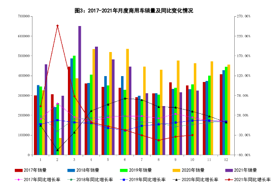 10月,中国品牌乘用车销售95.2万辆,同比增长9.2%,占乘用车销售总量的47.5%,占有率同比上升6.2个百分点。 1-10月,中国品牌乘用车累计销售738.7万辆,同比增长28.1%,占乘用车销售总量的43.8%,占有率同比上升6.6个百分点。其中,轿车销售238.9万辆,同比增长68.7%,市场份额为30.6%;SUV销售411.5万辆,同比增长16.9%,市场份额为51.9%;MPV销售57.2万辆,同比增长8.1%,市场份额为68.6%。 (二)10月商用车销量同比下降29.7% 10月,商用车产销分别完成34.2万辆和32.6万辆,同比分别下降26.9%和29.7%。分车型看,货车产销分别完成30.5万辆和28.7万辆,同比分别下降28.2%和31.8%;客车产销分别完成3.7万辆和3.9万辆,同比分别下降14.0%和8.8%。 1-10月,商用车产销分别完成393.9万辆和409.9万辆,同比分别下降6.3%和2.5%。分车型看,货车产销分别完成352.5万辆和368.8万辆,同比分别下降8.8%和4.6%;客车产销分别完成41.5万辆和41.1万辆,同比分别增长22.2%和21.6%。