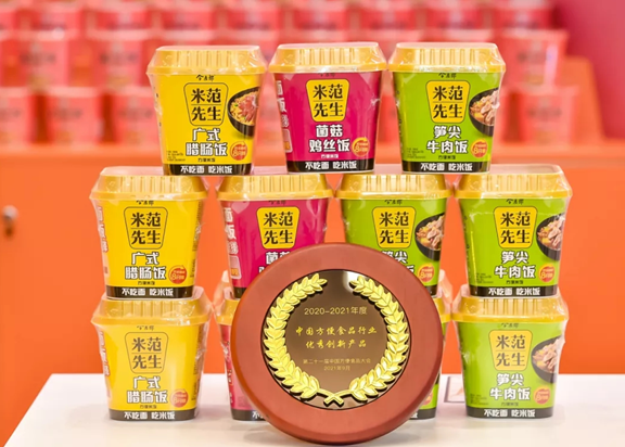 老范家0油炸健康面 图片来源:今麦郎 “真正的创新我认为是从创新到创‘心’,要提升一个台阶。如果我们企业不用心,甚至没有推开消费者心门,如果没有价值锚点,就和一个叶子一样,你没有根基会被吹掉。我认为真正方便面行业的创新,需要有一个价值锚点,这是创新的基础。就像大楼盖好一样,不断地加高,它的基础一定是非油炸。我非常希望五年、十年后,国内的企业非油炸在整个行业中占比能够占到80%以上,真正实现我们健康中国减油、减盐、减糖的健康需求。这是我们头部企业义不容辞的责任,我们要推动它。”今麦郎董事长范现国在第二十一届方便食品大会上讲到。 在方便面产品赛道上快速前行的今麦郎,在速食米饭类产品上也给市场带来了巨大惊喜。荣获第二十一届中国方便食品大会两项创新大奖的米范先生冲泡米饭,只需8分钟,就可以用热水冲泡出来一顿方便快捷的美味,是传统中餐真正意义上的方便快捷化。冲泡米饭在工艺上的创新,也推动了方便米饭类的速食产品进入了一个全新的发展阶段。今麦郎米范先生冲泡米饭创新的理念也是基于消费者多元化需求精准洞察的基础上,不但让方便速食变得更加方便,更是让消费者的生活有了更多的选择,做到了“不吃面 吃米饭”。