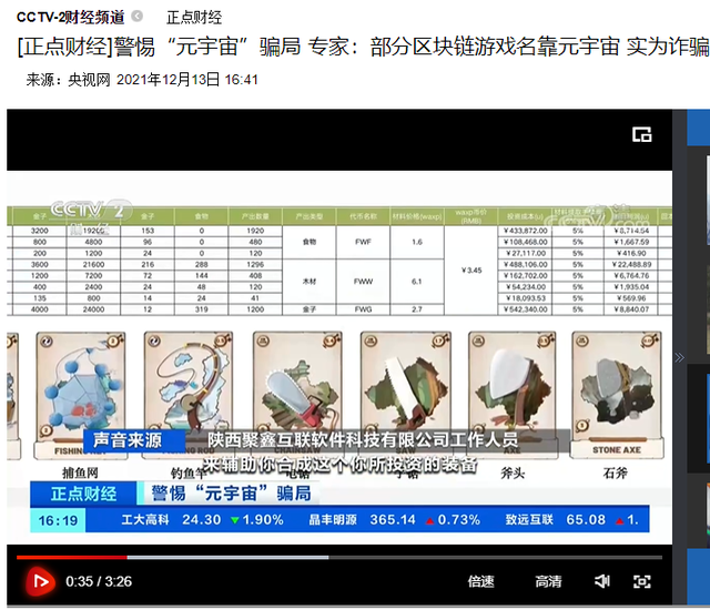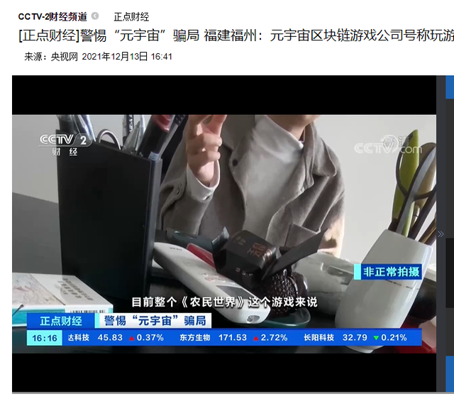12月13日下午,央视财经频道点名元宇宙游戏,连发两条视频,标题为《警惕“元宇宙”骗局 福建福州:元宇宙区块链游戏公司号称玩游戏赚大钱 月收益近100%》、《警惕“元宇宙”骗局 专家:部分区块链游戏名靠元宇宙 实为诈骗》。 ![]() 其背景是,元宇宙和NFT等成为市场热点,出现很多区块链游戏(“链游”),这些链游宣传自己为“一边玩游戏一边能赚钱”。新闻报道中显示,央视记者走访了位于福建、陕西等地元宇宙游戏托管公司并采访了数位专家学者。上海信昌律师事务所主任蒋振伟认为,如果是有公司作为主体或者作为平台方来帮投资者、游戏玩家实施这些操作行为,涉及刑事犯罪,因为国家已经明文规定禁止从事这类业务。 ![]() 央视财经提到,这些自称单日收入数千元的游戏,画面粗糙简单,只用鼠标点击操作就可以获得装备,装备可以兑换成虚拟货币。报道中提到,“业内人士称,元宇宙链游其实只是骗局,很多只是网络小游戏改版而来,成本很低,在游戏当中,用户赚取的是代币,代币价格可以被操盘方操控,如果哪天这款游戏玩不下去,用户赚取的代币恐怕无法提出来。”专家称,元宇宙游戏是打着元宇宙旗号做的新型骗局,用户的资金到了境外转换成虚拟货币,后续收益或提现是没有约束的。 |