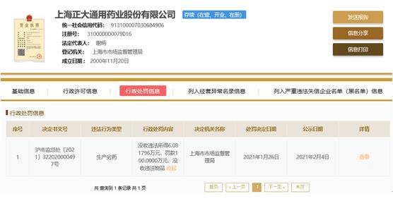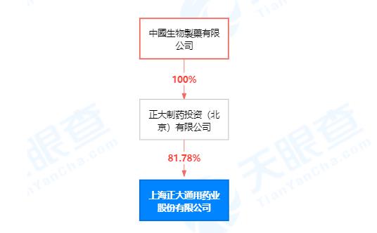 天眼查显示,上海正大通用药业股份有限公司即原上海第九制药厂,系中国生物制药有限公司旗下企业。从股权来看,中国生物制药有限公司全资子公司正大制药投资(北京)有限公司持有上海正大通用药业股份有限公司81.78%的股权。