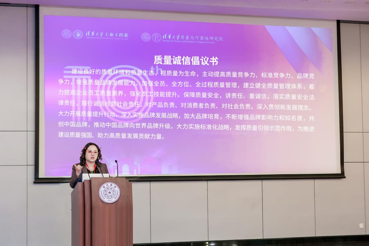 中华环保联合会常务理事、ESG专家委员会副主任、深圳AGIC(国际)通用人工智能大会联合主席、深圳美丽魔方健康投资集团董事局主席陈琼女士作题为《匠心质量推动新质生产力发展》的分享。陈琼女士多方位阐述了质量在企业与社会中的重要作用,尤其强调了新质生产力发展中ESG所扮演的重要角色,并进行了详细阐述。并得到了与会专家学者的高度共鸣。随后,陈琼女士应邀作为优秀企业代表进行了质量诚信清华倡议书。