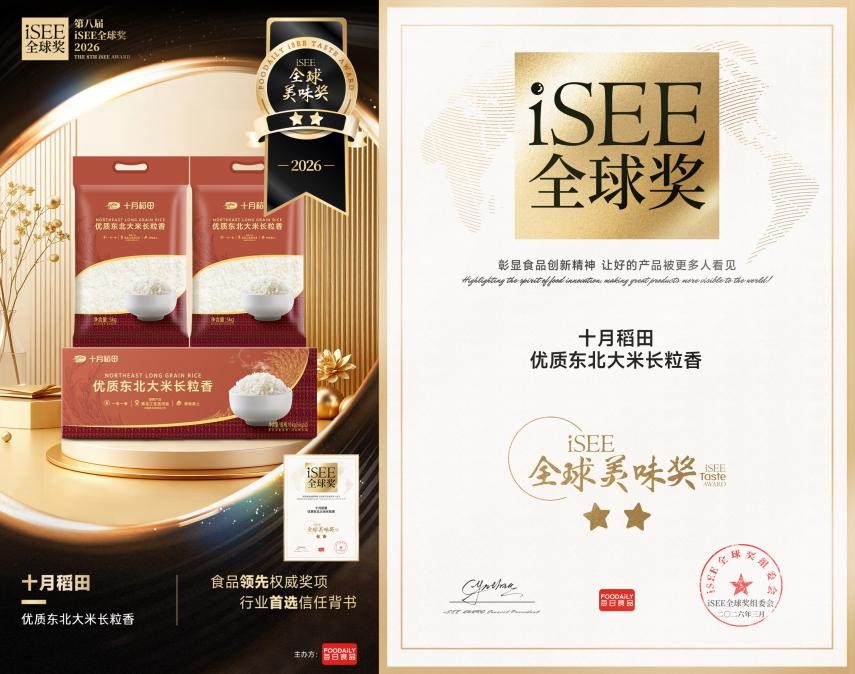 此次揽获2026 iSEE全球奖五项重磅荣誉,是国际权威对十月稻田产品力、创新力与行业影响力的全方位认可,更是品牌前行的全新动力。未来,十月稻田将秉持匠心,继续前行,持续深耕产品创新与品质升级,不断优化供应链能力,用更安全、更健康、更美味的产品,传递中国味,让真材实料的自然美味,走进更多家庭的餐桌之上。