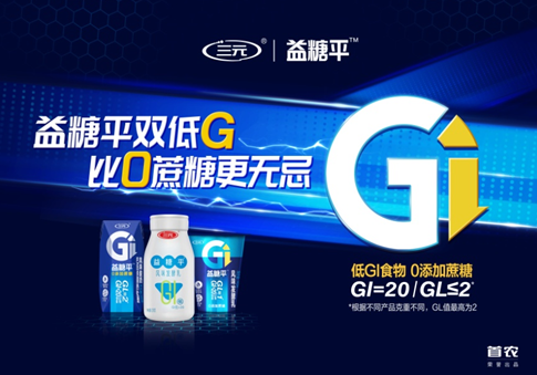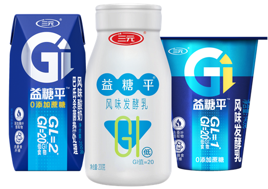 三元益糖平酸奶是 “双低G”酸奶。经临床测试,益糖平系列酸奶GL值最高仅为2,一杯益糖平酸奶的GL值比8克米饭的GL值还低;益糖平酸奶GI值仅为20,远远低于大米饭(83)、油条(75),甚至低于绿豆(27)。