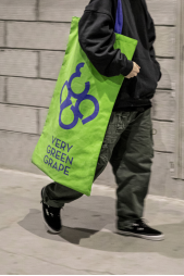 此外,喜茶还推出自制多肉青提超大帆布包,造型上突破常规帆布包尺寸限制,形成“抢夺视野”的视觉冲击力,同时也以“青松提走”的slogan,传递环保可持续与轻松理性消费的理念。