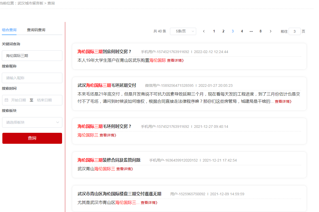 近期,我们在武汉城市留言板看到消费者反映的武汉青山海伦国际三期迟迟无法交付,武汉青山海伦国际三期13号楼毛坯交付时间为2021年12月31日,装修合同是毛坯交付后305天完成装修交付。时至今日,毛坯至今未交付,开发商给出的答复是交房时间为2023年1月31,至今给出的施工进度表就是在忽悠业主。