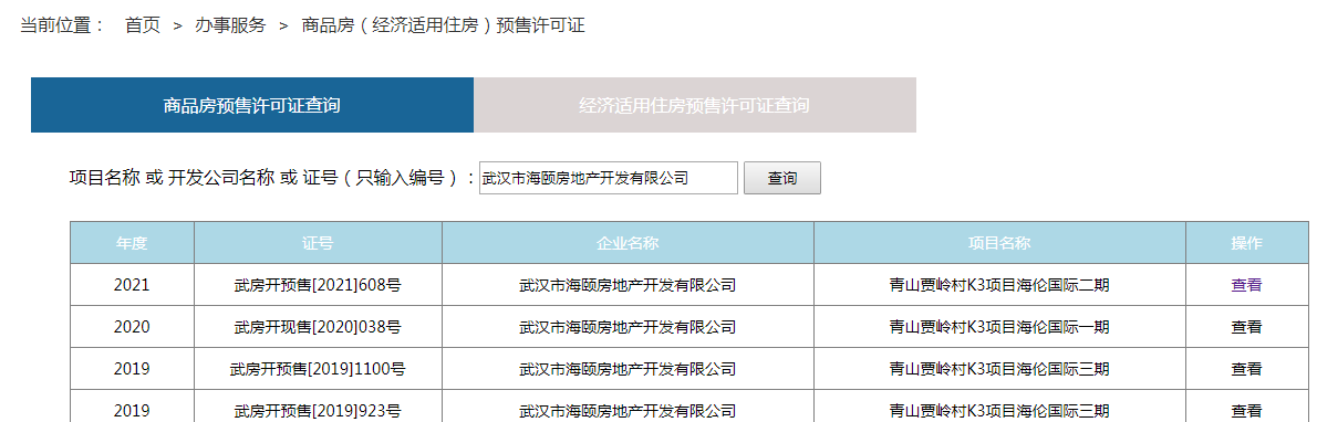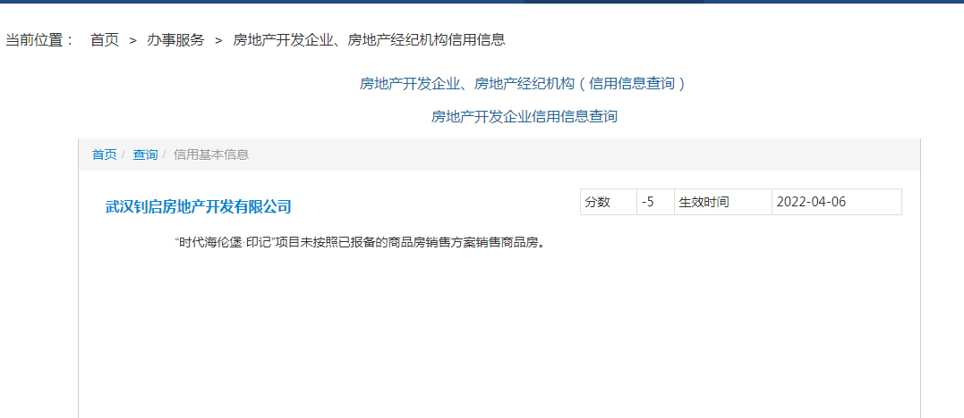 在武汉房管部门的企业信用查询到,海伦堡武汉有两个项目信用被扣分,其中就涉及海伦国际三期项目。