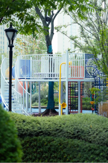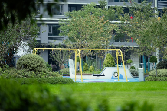 大草坪西侧则是约520㎡儿童游乐空间,从滑滑梯到登高拓展,从趣味秋千到多功能健身器械,电子产品不再是孩子们唯一的欢乐源泉,家人们打开家门,走下楼即可享受亲子玩耍的无边乐趣。