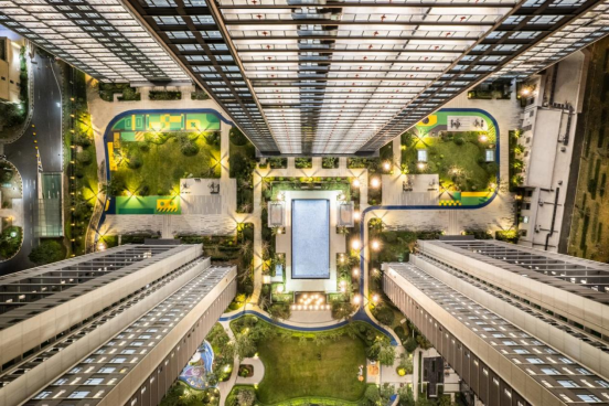 从园区的盎然绿意到承载多元志趣的架空层,属于绿城的生活故事仍然在继续。在【U-YOUNG】空间,年轻人在此交友、运动,满足随时可锻炼的生活需求。