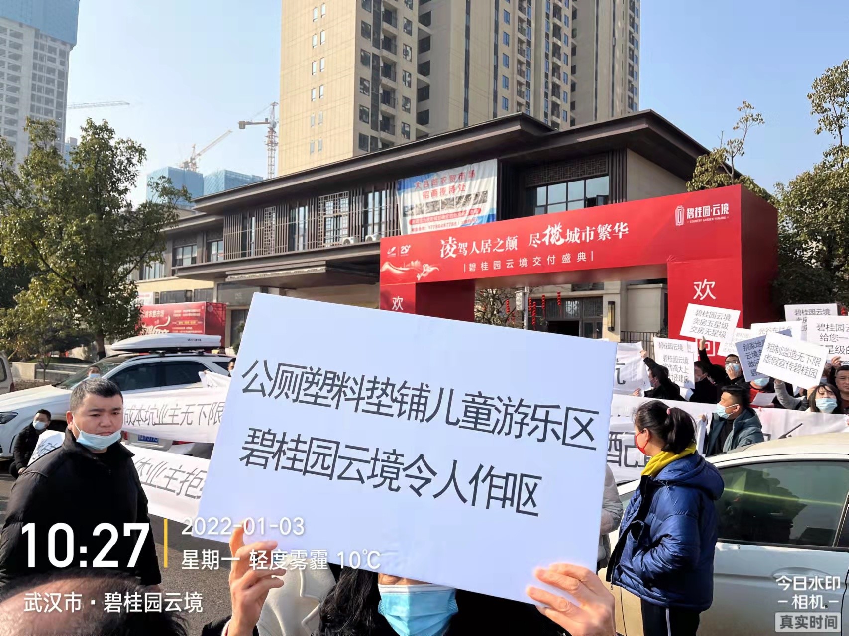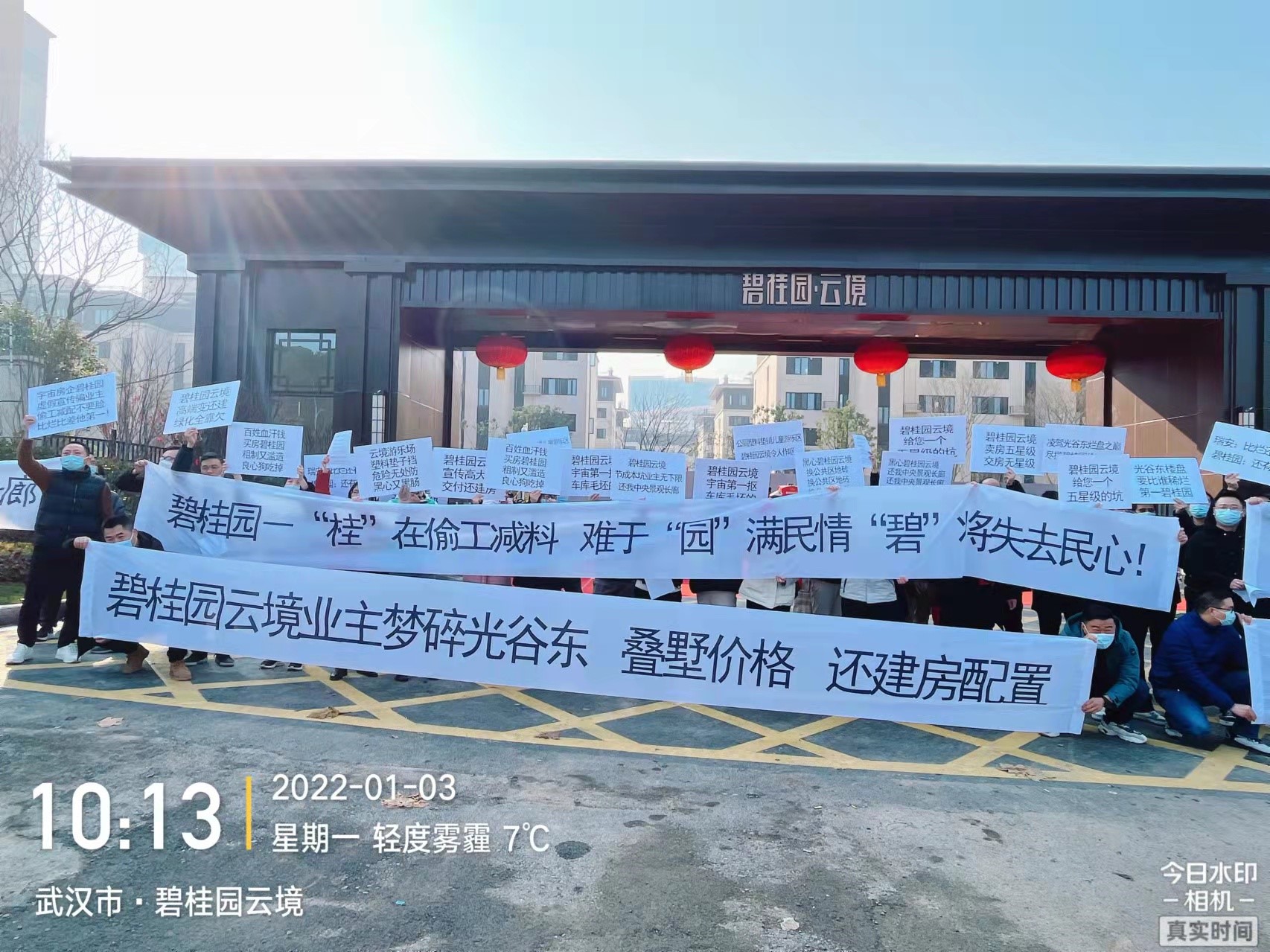 2022年1月3日,该项目业主自发组织来到项目进行维权,并提出整改意见。