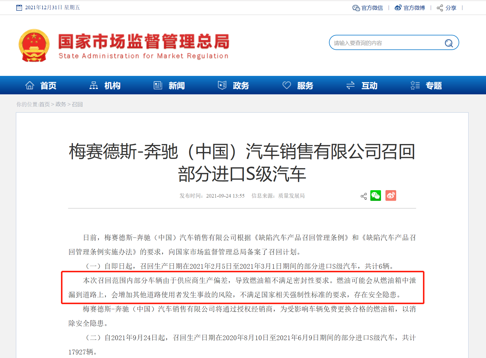 其中,进口S级单独车型的召回公告在今年的召回公告中发布最多,召回数量超过29952辆。主要召回原因,一方面是范围内车辆安全气囊控制单元模块的软件不满足要求,当车辆发生碰撞时会增加前排乘客受伤的风险。另一方面,车辆的通信模块控制单元软件存在问题,当发生危险时用户不能通过通信模块实现自动或手动建立紧急呼叫的语音连接,可能会导致救援延迟,存在安全隐患。