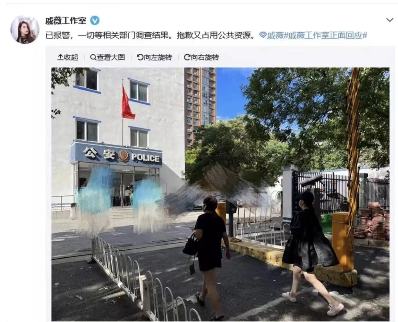 8月17日,戚薇工作室发布声明回应此事。声明称,戚薇直播间在商品推荐、销售及售后服务过程中均遵守相关法律法规,直播间推荐的所有产品均来自正规合法渠道,并承诺若确认此次商品为假货,一定假一赔十,对产品质量及售后问题承担相应责任。工作室表不会容忍任何背离事实的指控。而后戚薇工作室又晒出戚薇在警察局的照片,称“已报警,一切等相关部门调查结果”。