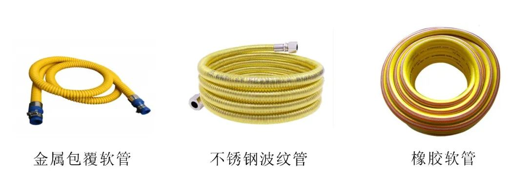 用于燃气燃烧器具连接用的软管可分为:非金属(橡胶、塑料、橡胶复合、带金属包覆)软管和金属(不锈钢波纹)软管。燃气用具连接用不锈钢波纹软管,使用年限为8年。在此提醒消费者:依照新的国家规范,家庭购买使用的燃气软管应当尽量选用不锈钢波纹管。