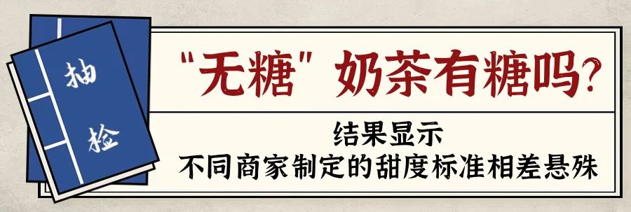 抽检的15批次标称“无糖”的奶茶,含糖量在0.84~8.43g/100g之间,均不符合国家无糖标准规定。