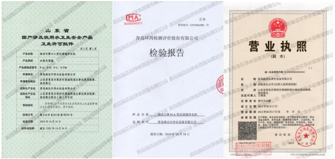 富氢水机销售方提供的企业资质。资料图片