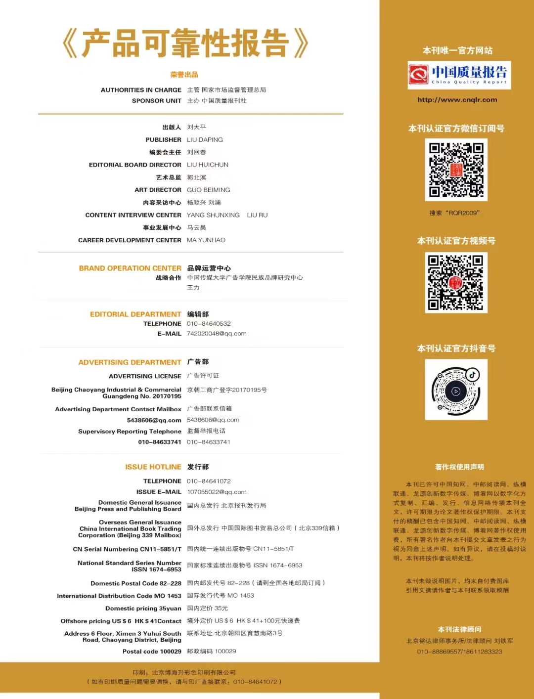 《产品可靠性报告》重点关注汽车、电器、食品、化妆品、IT电子、房屋家居、数字科技、健康、直播电商等领域。