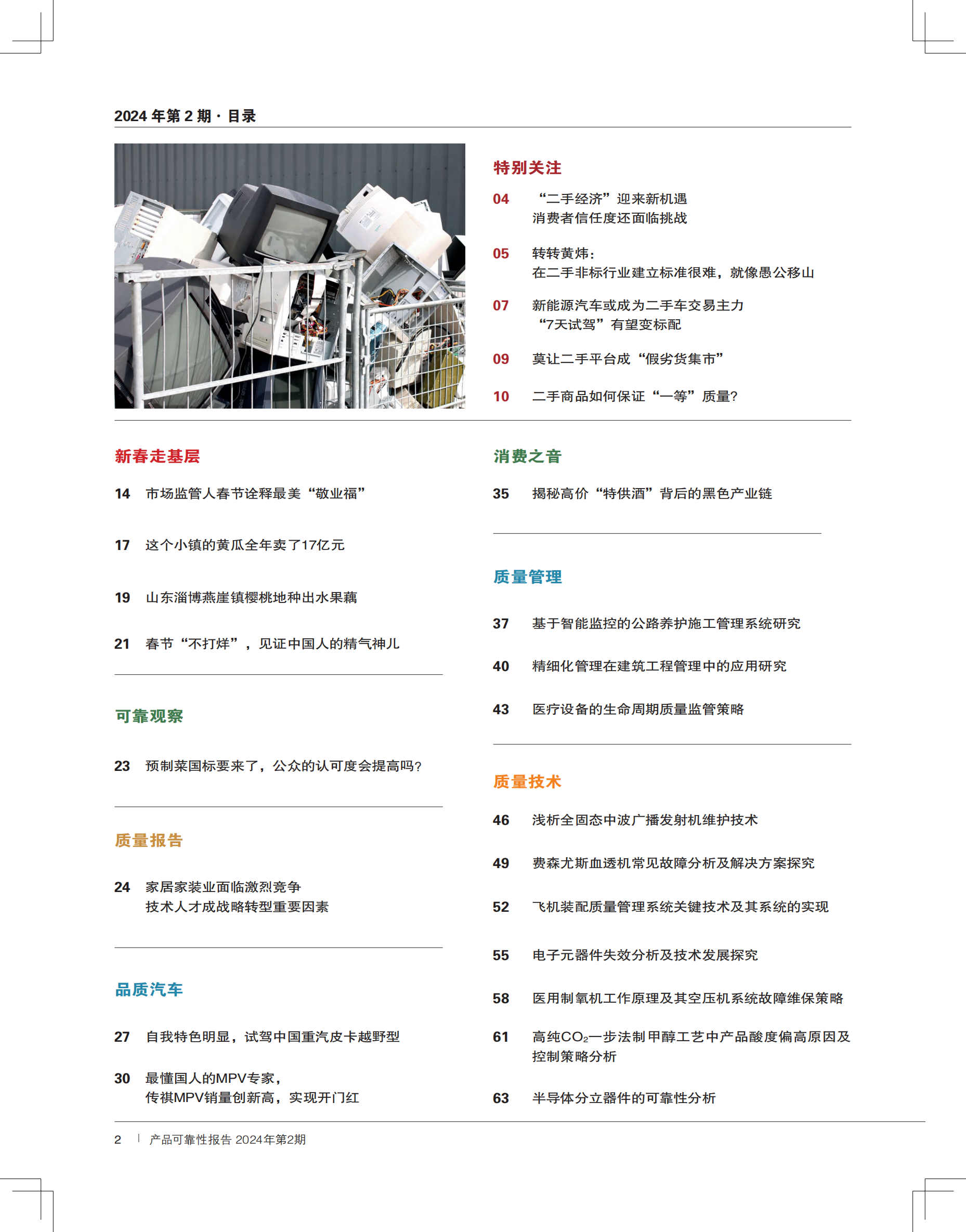 《产品可靠性报告》由国家市场监督管理总局主管、中国质量报刊社主办,国内外公开发行,基于大数据,以质量管理、质量技术、质量安全为视点,以数据型、研究型报告为主的科技月刊。