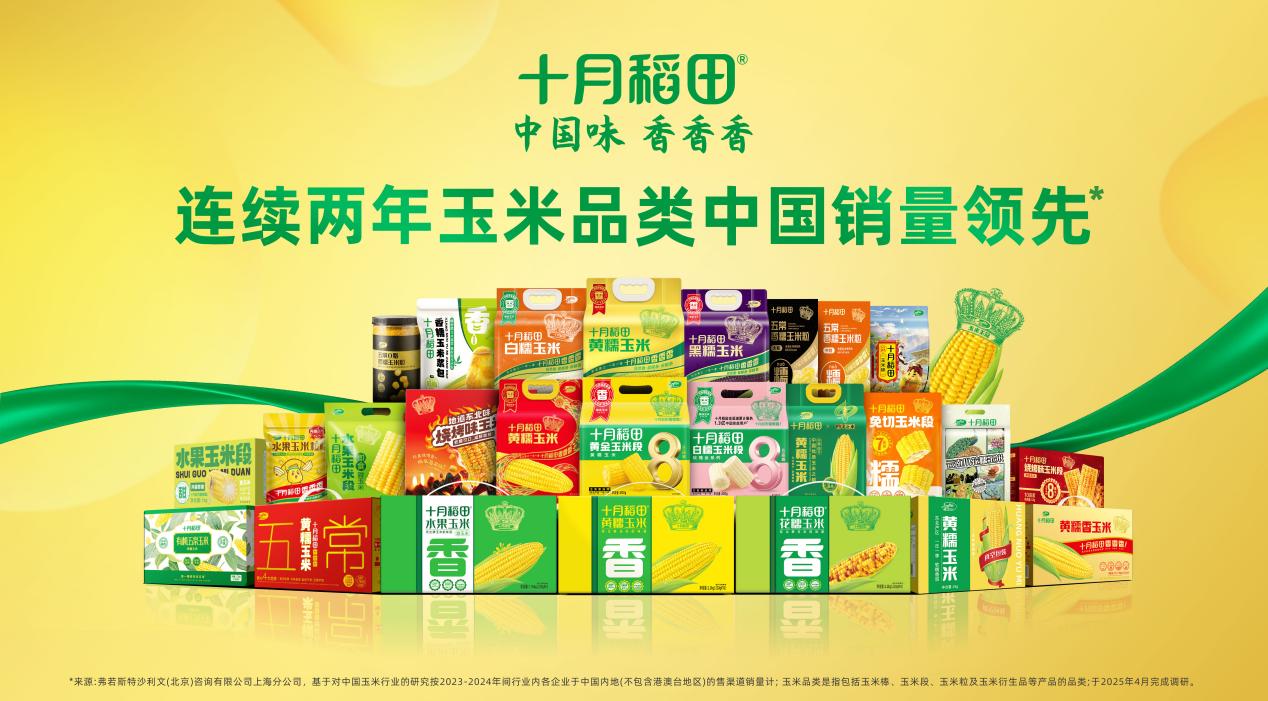 另外,十月稻田还在品类创新上持续发力。在健康饮食浪潮下,十月稻田敏锐洞察新趋势,将玉米打造为轻食化、零食化的健康快消品,推出了玉米棒、玉米段、玉米粒等多形态产品,不仅满足了消费者对健康、便捷的需求,还创新性地推出了烧烤味玉米、麻辣味玉米等风味系列,将玉米的消费场景从家庭餐桌延伸至健身房、写字楼和露营地,实现了从产品服务到场景服务的创新。据了解,十月稻田玉米获得弗若斯特沙利文“连续两年玉米品类中国销量领先”认证的同时,抖音平台数据显示,截至2025年8月,仅十月稻田黄糯玉米单品链接累计销量就已超过1450万单。玉米品类已经成长为十月稻田第二增长曲线。