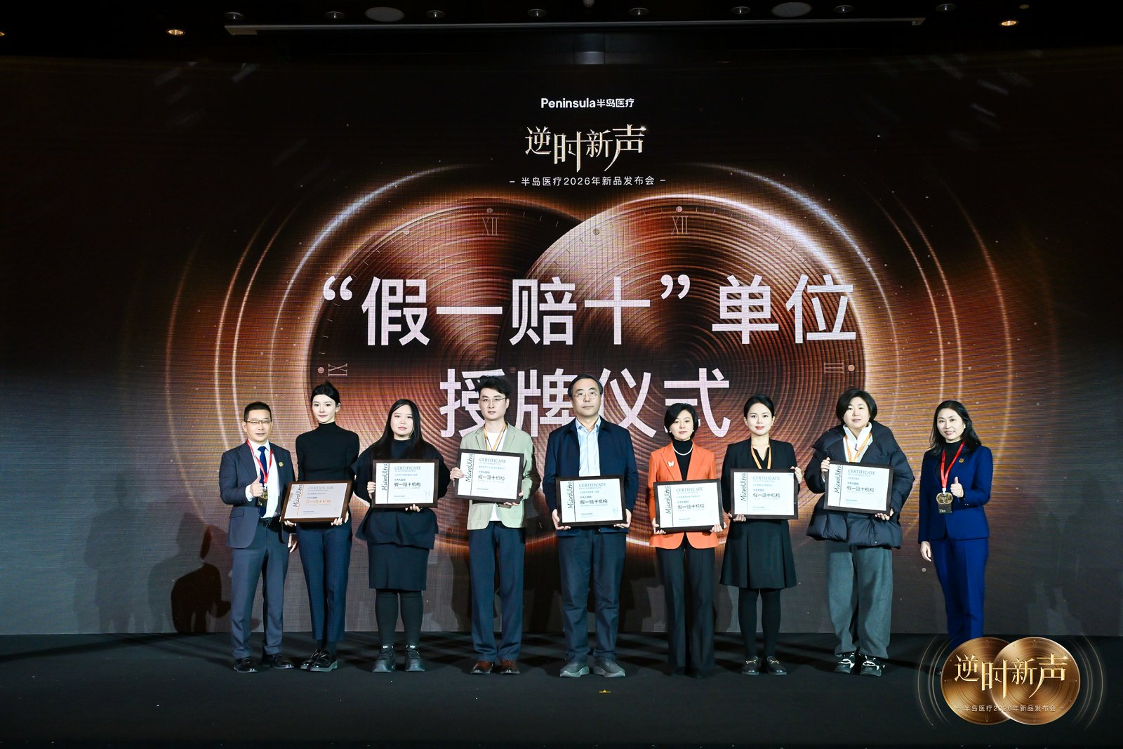 发布会现场,半岛医疗再次举行“假一赔十”正品承诺授牌仪式,与全国百余家合作伙伴共同宣誓,筑牢行业品质生命线。