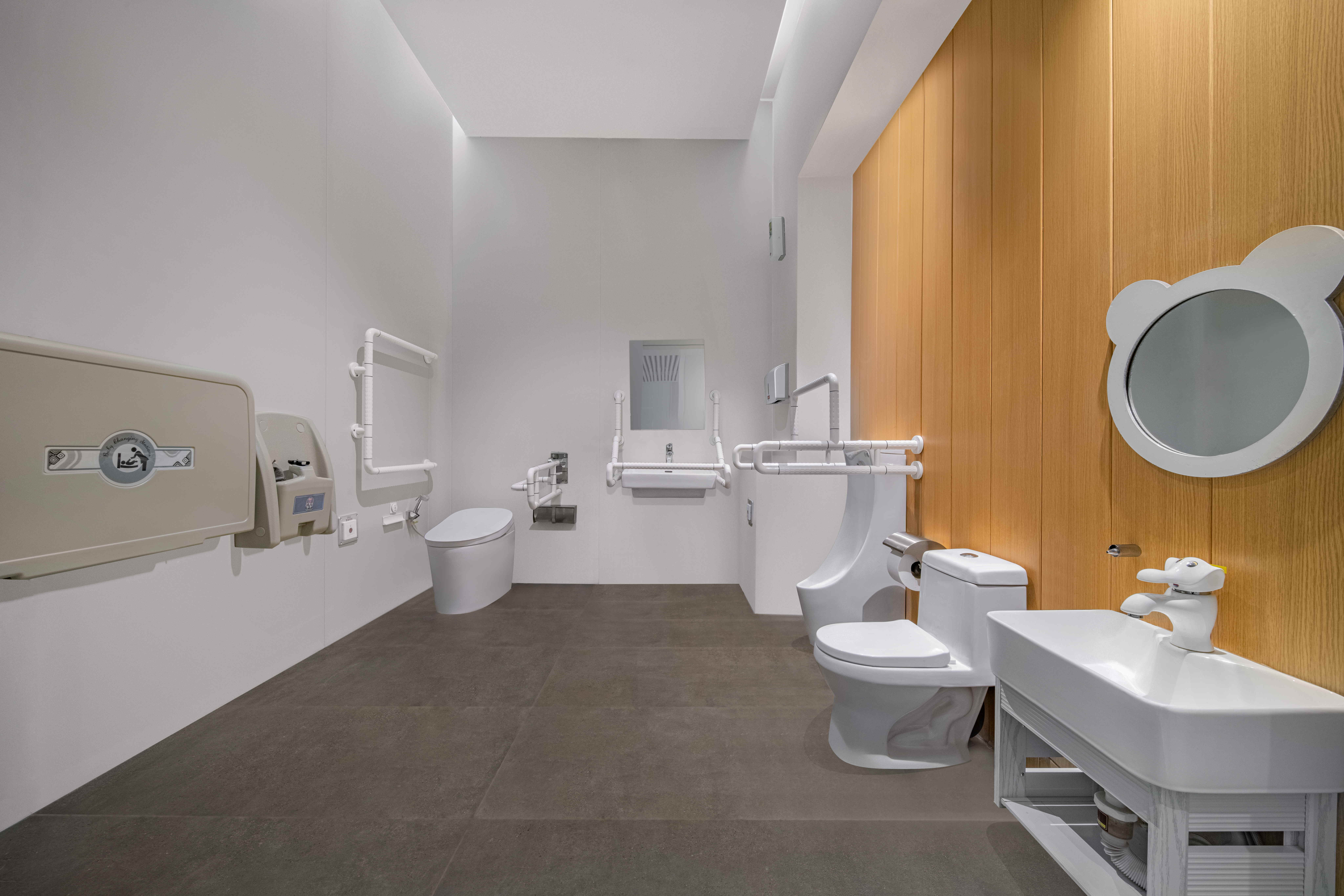 九牧还为雄安站设置第三卫生间,呵护长者及幼童,让家庭出行更便捷安全。智能坐便器和感应一体小便斗,提升使用舒适度;儿童马桶,尺寸专为幼童设计;扶手、婴儿护理台等特需设施,贴心照顾特殊需求,保障卫生与安全。