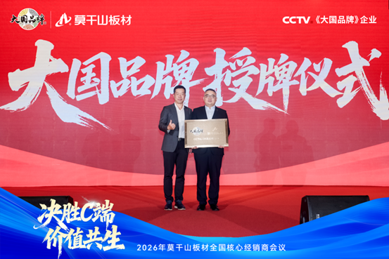 随后,CCTV《大国品牌》总出品人吴纲与莫干山板材总经理姚国良共同启动大国品牌授牌仪式,这一里程碑时刻标志着莫干山板材正式跻身“中国品牌国家队”,也为莫干山品牌迈向全球舞台按下加速键。
