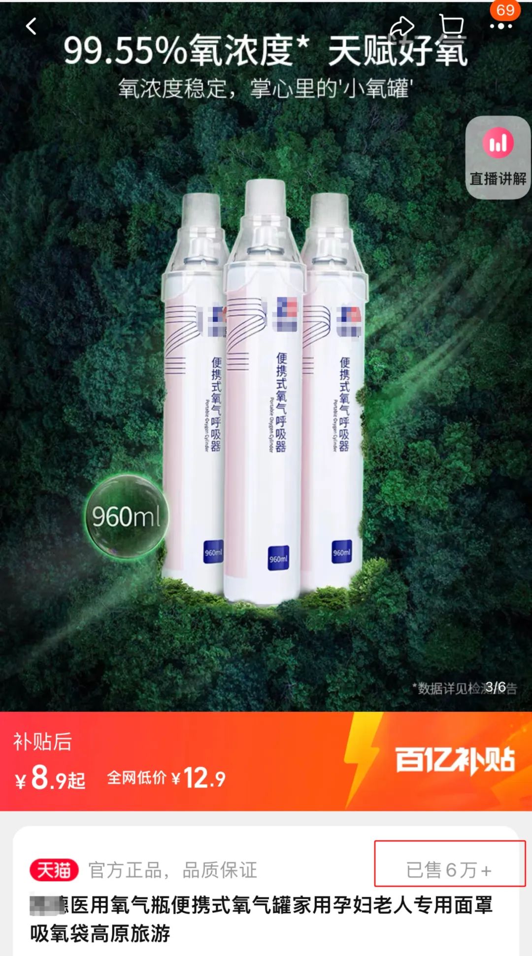 有多个品牌的便携式氧气瓶在售卖
