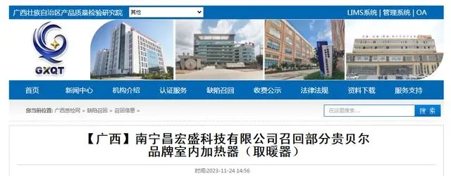 日前,南宁昌宏盛科技有限公司按照《消费品召回管理暂行规定》的要求,主动向广西壮族自治区市场监督管理局报告了召回计划,将自即日起,召回2022年10月1日至2022年12月8日期间生产的型号NSL-90的贵贝尔品牌室内加热器(取暖器),涉及数量为12台。