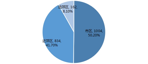 从居住地上看,1004人居住在市区(东城区、西城区、朝阳区、海淀区、丰台区、石景山区),占比50.20%;834人居住在近郊区(门头沟区、房山区、通州区、顺义区、昌平区、大兴区),占比41.70%;162人居住在远郊区(平谷区、怀柔区、密云区、延庆区),占比8.10%。