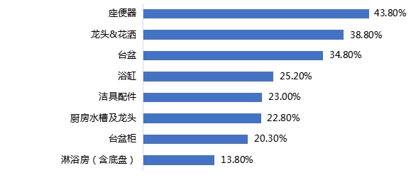调查结果显示,22.40%的调查对象认为座便器是影响自身购买定制化系列产品的决定性品类;其次是淋浴房(含底盘);占比14.10%。