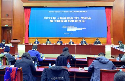 中国经济网北京12月7日讯 由中国社会科学院主办,中国社会科学院科研局、中国社会科学院数量经济与技术经济研究所、中国社会科学院宏观经济研究智库、社会科学文献出版社承办的“2022年《经济蓝皮书》发布会暨中国经济形势报告会”在北京举行。