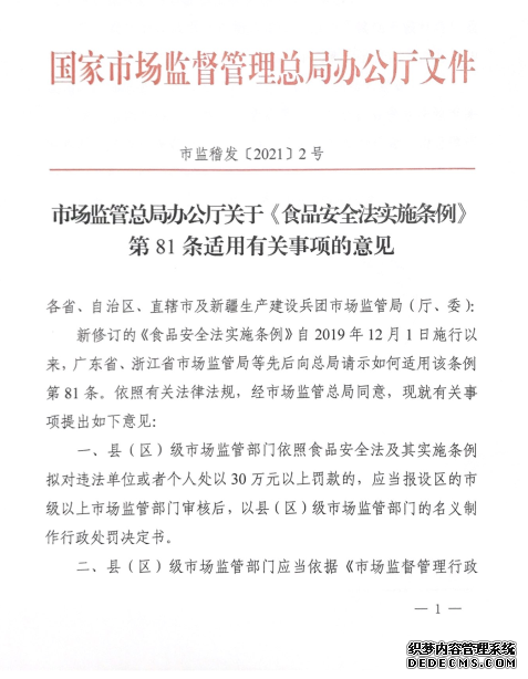 市场监管总局办公厅关于《食品安全法实施条例》第81条适用有关事项的意见