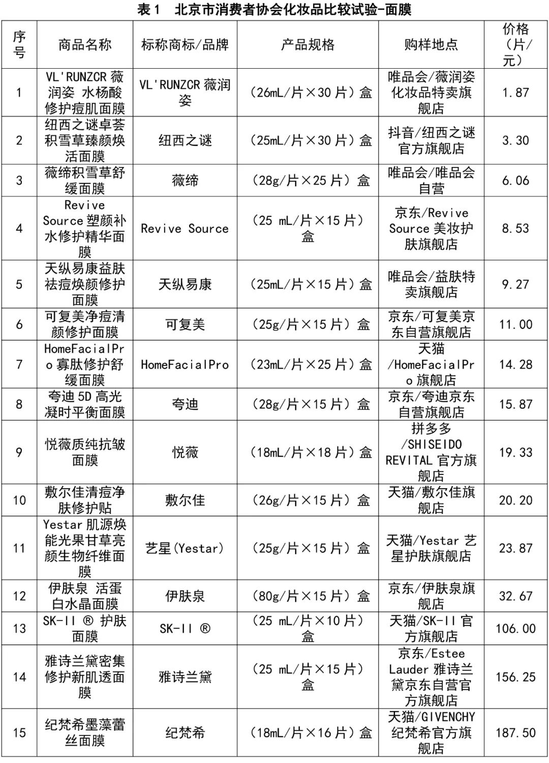 本次比较实验共选取了15款面膜,本次样品购买覆盖了国产产品和进口产品,国产12批次,进口3批次,从价格来看覆盖高中低3档,单片价格<10元共5款,10-100元共7款,100-200元共3款。上述样品经过备案信息核查、标签核查(2022年5月1号后备案的产品)的合规性审查,以及重金属(铅砷汞镉)、微生物5项、急性眼刺激、41种糖皮质激素、耐寒、耐热、pH相关项目的检验。检验结果均符合相关标准要求。