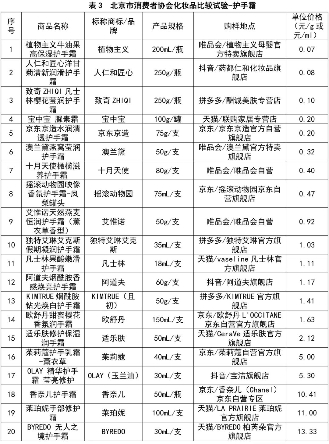 按产品单位价格来看,植物主义牛油果高保湿护手霜以0.07元的单位价格取得国产产品中较高的性价比。欧舒丹甜蜜樱花香氛润手霜在进口大牌产品中以1.63元的单位价格取得较高的性价比。