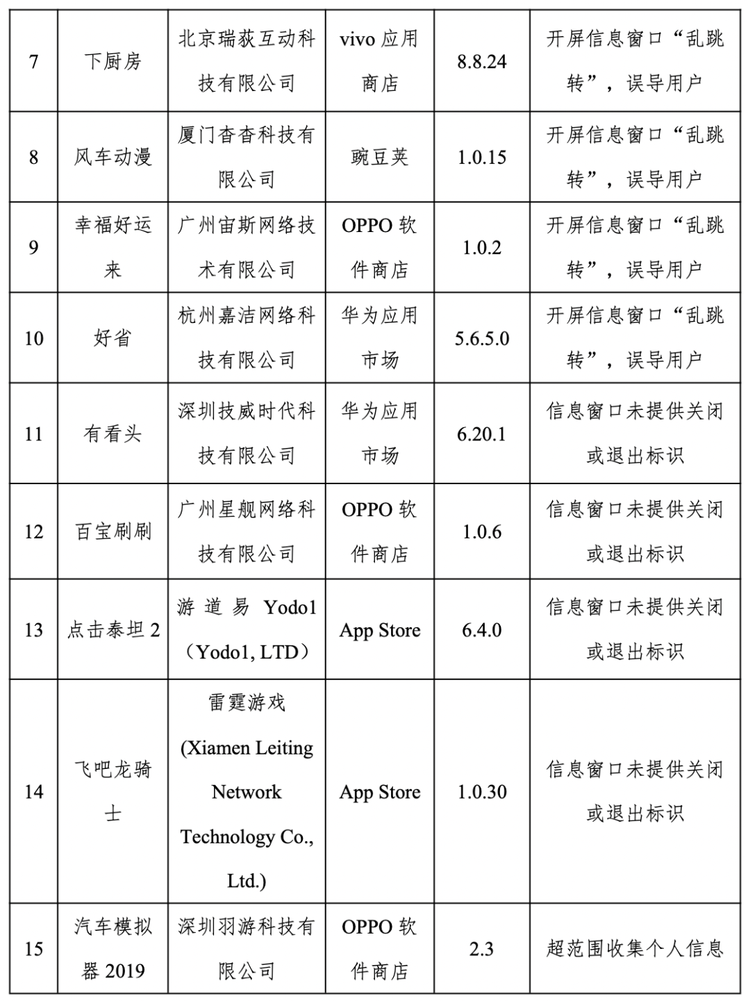 侵害用户权益行为的31款APP